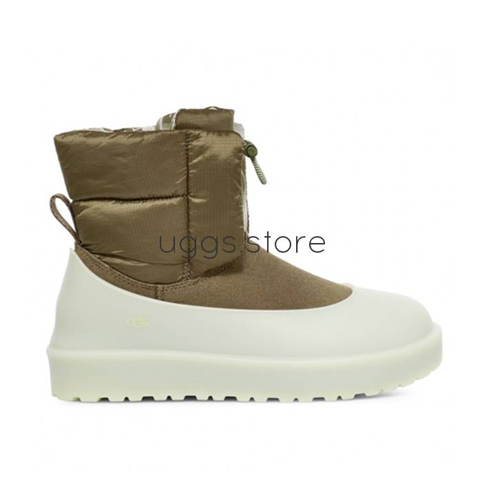 Модели в которых прям указано, что они водоотталкивающие (waterproof), обливные угги (замша с лазерным водоотталкивающим покрытием) и все классические модели второй серии ( II )также выполнены с водоотталкивающим покрытием.